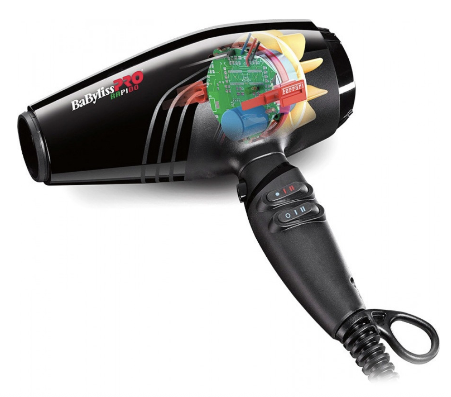 BaByliss PRO Rapido BAB7000IE este un uscător de păr profesional, ultra-ușor și extrem de performant, conceput special pentru utilizare intensivă în saloane. Fabricat în Italia, este dotat cu un motor digital avansat care oferă o durată de viață extinsă și o eficiență energetică superioară. Tehnologia cu ioni negativi contribuie la reducerea electricității statice, oferind un păr mai neted, mai strălucitor și mai ușor de coafat.