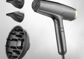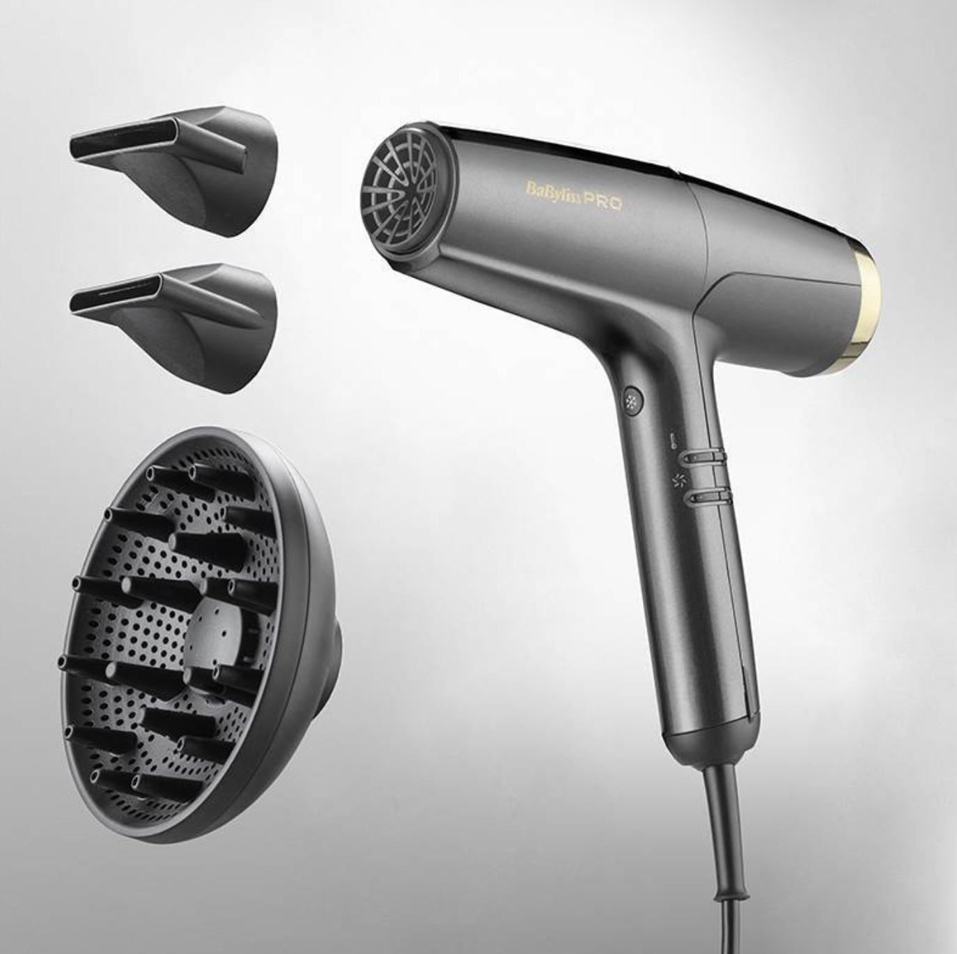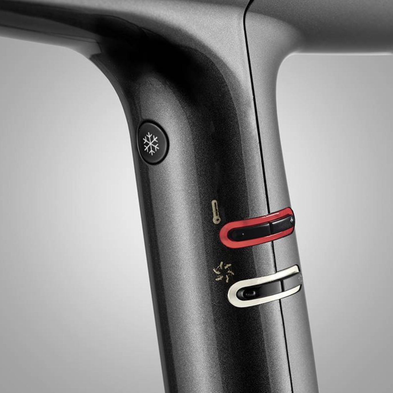 BaByliss PRO Falco Grey&Gold (BAB8550E) este un uscător de păr profesional de ultimă generație, proiectat în Italia, cu performanțe ridicate și un design ergonomie T‑shape. Motorul digital high‑speed asigură o viteză a fluxului de aer de până la 244 km/h și un debit de 55 m³/h, garantând uscare rapidă și eficientă pentru orice tip de păr. Tehnologia ionică reduce efectul de electricitate statică, oferind păr neted, strălucitor și ușor de aranjat .